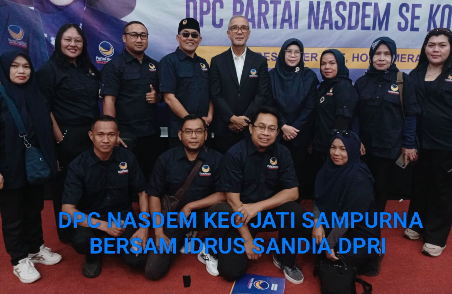 Harian Publikasi, Kota Bekasi – Dewan Pimpinan Cabang (DPC) Partai Nasional Demokrasi (Nasdem) Kecamatan Jati Sampurna resmi dilantik oleh Dewan Pimpinan Wilayah (DPW) Partai Nasdem Provinsi Jawa Barat. Pelantikan ini merupakan bagian dari penguatan struktur organisasi hingga tingkat kecamatan.